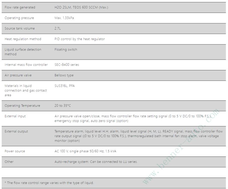 LSC-A100 提供 TEOS 600SCCM 和 H2O 2SLM 等材料的穩(wěn)定氣化